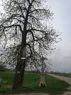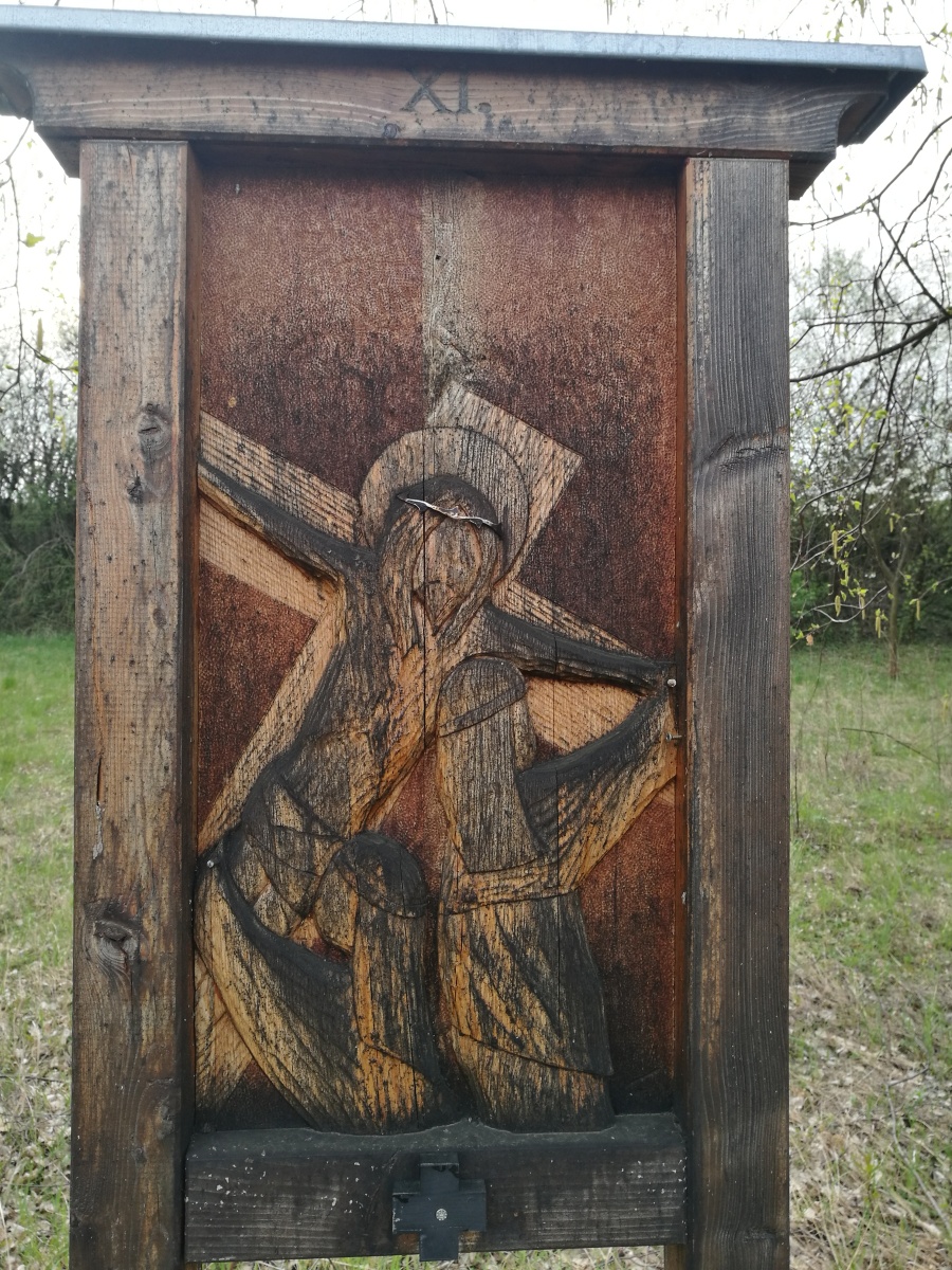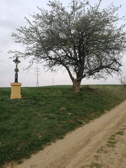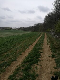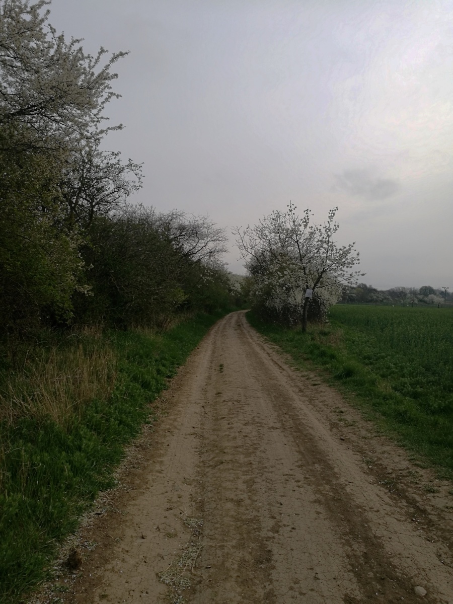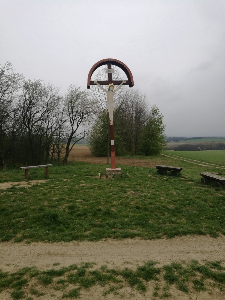 Překonaly jsme ten zběsilý a široký potok, prošly kolem včelína a po křížové cestě jsme se dostaly na polní cestu, kde bylo na kraji pole v obilí vidět stopy po předchozích týmech. Jak je zvykem, tak jsme potkaly spoustu nejrůznějších křížků a křížů. I přes zimu jsme si prohlédly jarní květy, když jsme minuly velké parkoviště pro kamiony, musely jsme se prodrat, kolem cementárny, kde bylo pod přepravním pásem „nasněženo“.