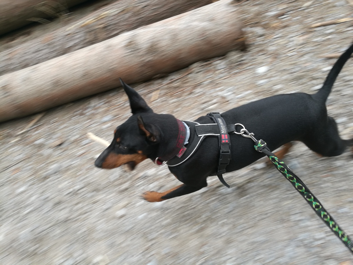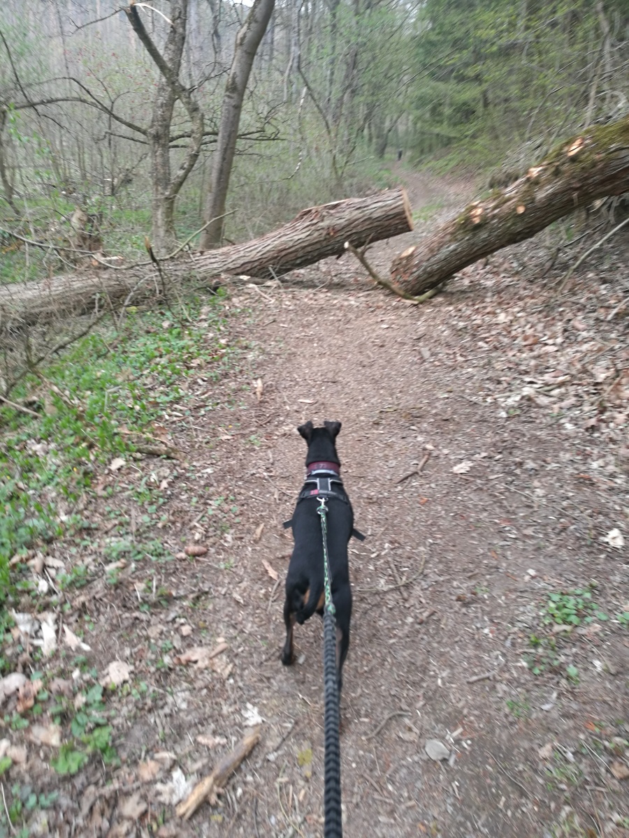 Kromě zimy, si na nás příroda přichystala i několik kmenů, které nám křížily cestu a musely jsme je překonat, chtěly jsme si pohrát na dětském hřišti, ale tam byl psům vstup zakázán, tak jsem s Černou Čůzou držela basu a raději jsme pokračovaly v cestě kolem rozzlobené smečky bíglů, k tomu nám začalo z nebe padat cosi bílého, naštěstí to nevydrželo moc dlouho a ani to nepadalo nijak hustě, tak jedna vločka na metr.